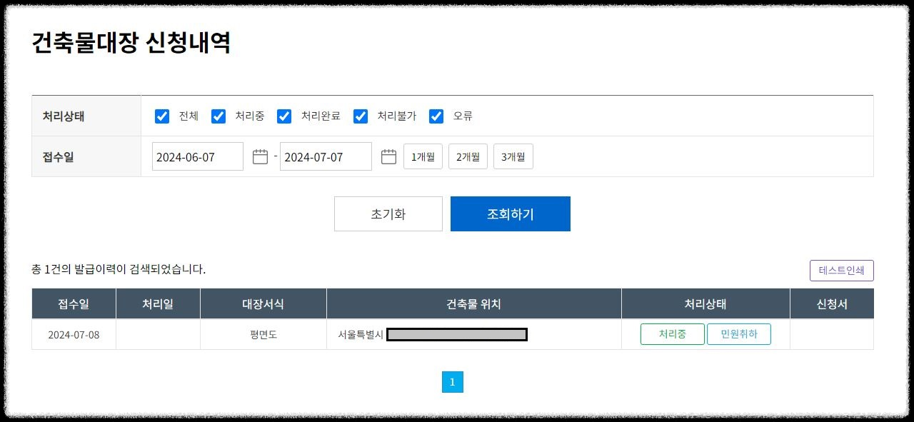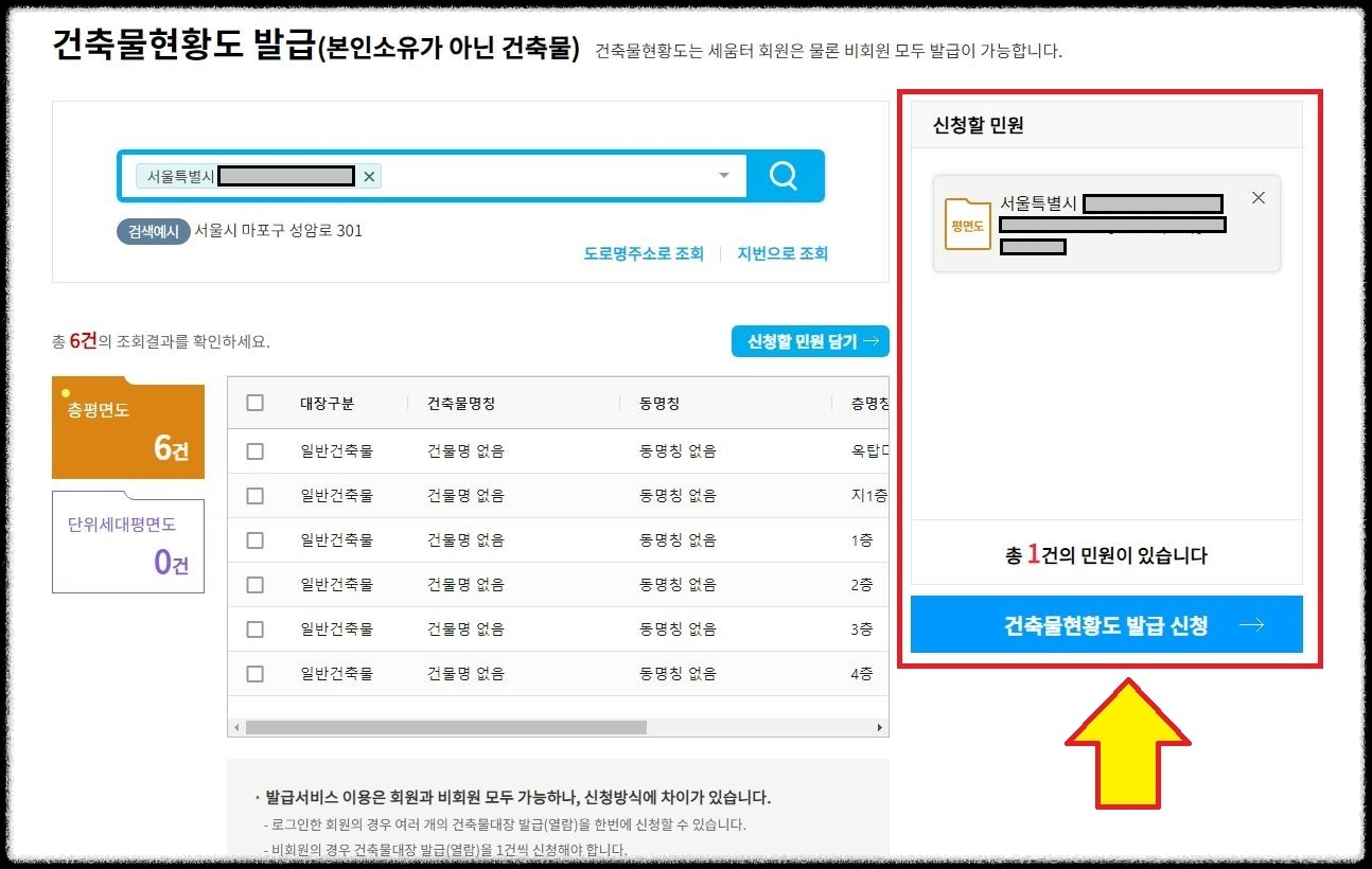 ⑥ 건축물대장 신청내역을 확인합니다.