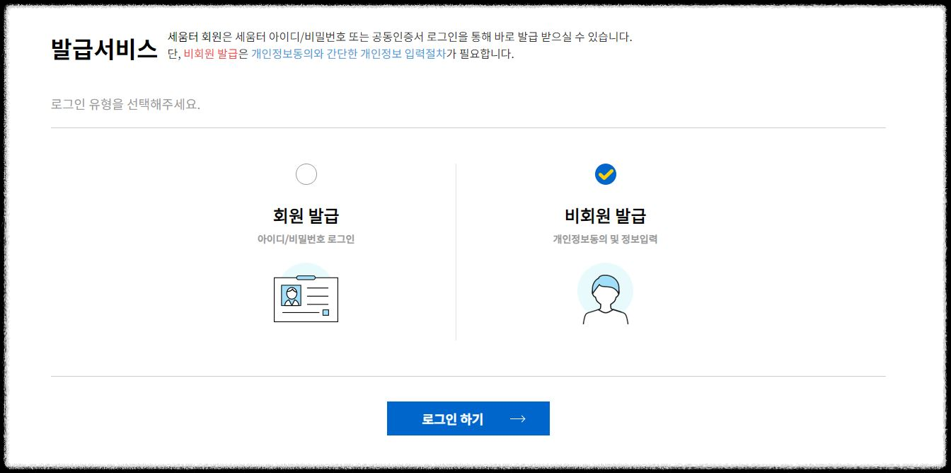 '비회원 발급'을 선택합니다.