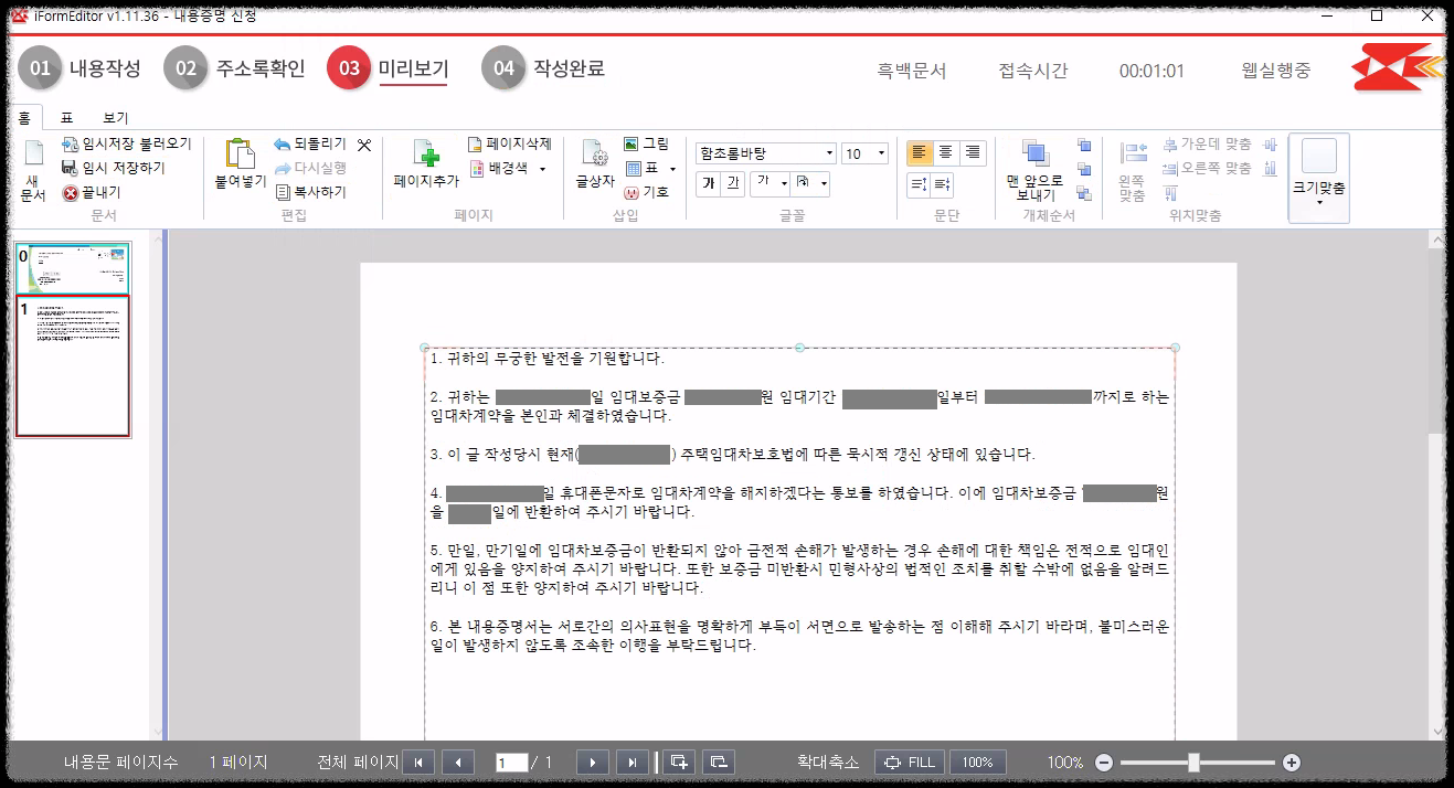 ④ 작성했던 내용증명서 내용을 복사하여 붙여넣습니다.