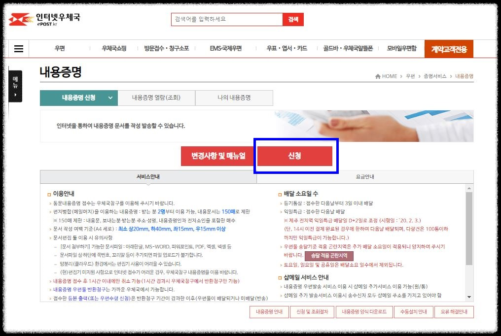 ⑥ 마지막으로 '내용증명 신청' 버튼을 누르고 '결제하기'까지 하면 내용증명 발송이 완료됩니다.