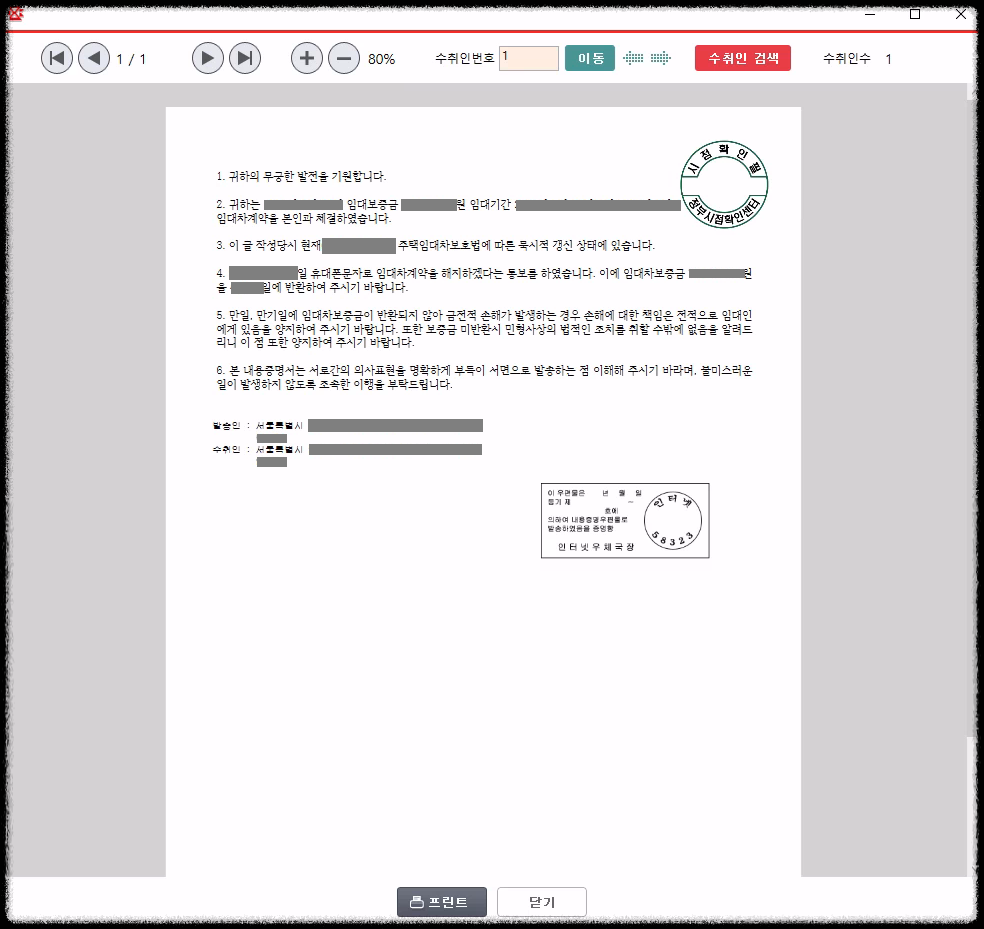 내용증명서 송부