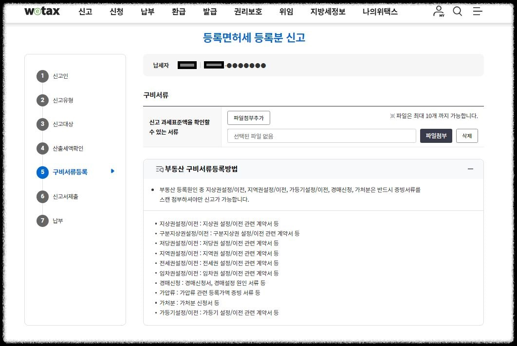 ⑦ '구비서류등록' 관련, 파일첨부는 하지 않아도 됩니다.