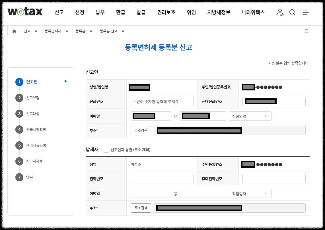 ③ '신고인' 및 '납세자' 부분을 작성합니다.
