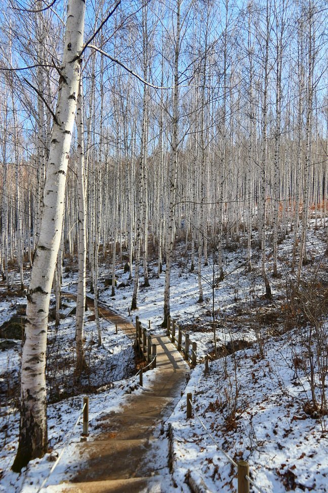 겨울철에는 하얀 자작나무와 눈이 어우러져 더욱 아름다운 경치를 감상할 수 있습니다.