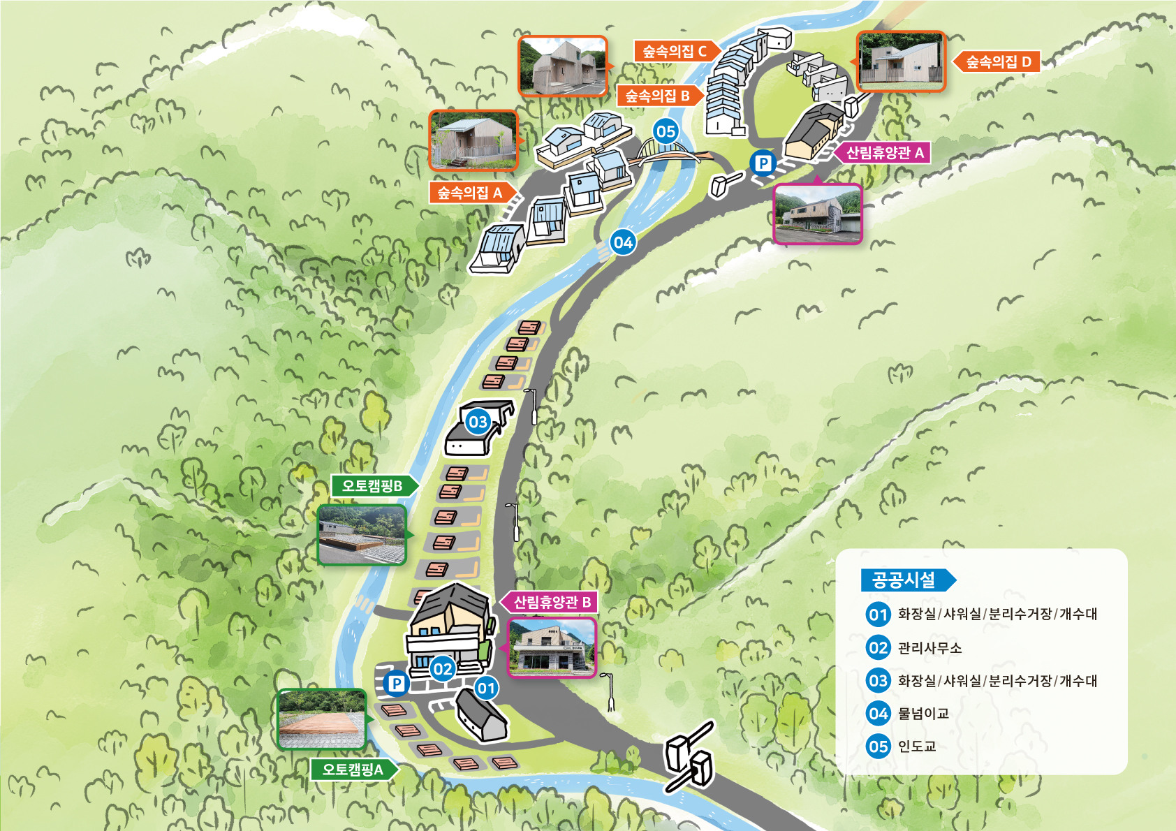 - 추천 코스: 계곡 산책로, 야영장